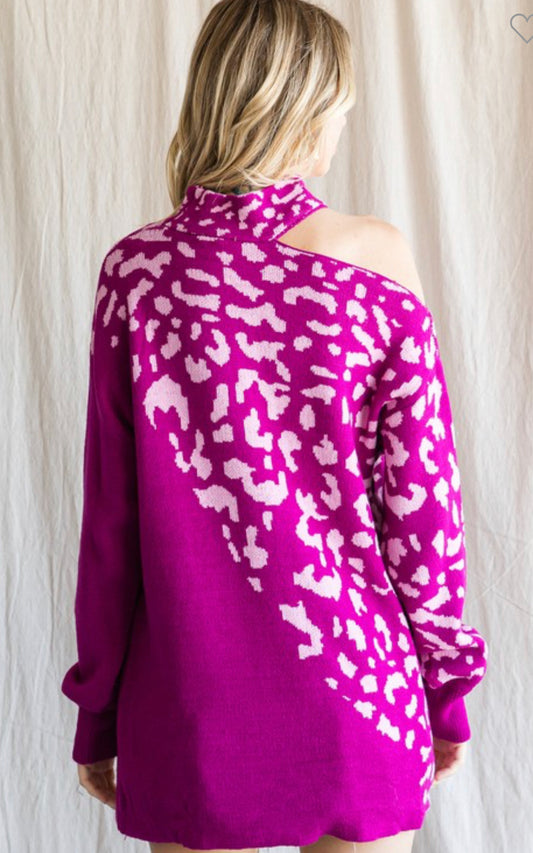 Fuschia Leopard one shoulder Sweater